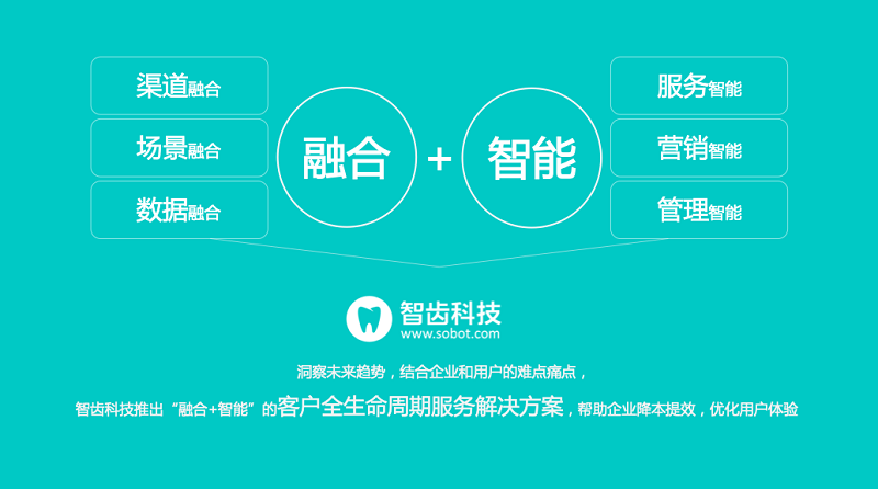 智齒科技創(chuàng)立于2014年,是一家客戶全生命周期服務(wù)解決方案的提供商。智齒科技在成立之初,就具備極具前瞻的判斷力,選擇了“智能+融合”的技術(shù)研發(fā)和產(chǎn)品布局,將呼叫中心、客服機器人“在線+呼入+呼出”、 人工在線客服、工單系統(tǒng)全面整合到產(chǎn)品體系中,用智能技術(shù)打通了企業(yè)獲客、營銷、售前、售中、售后服務(wù)體驗的完整閉環(huán),每一款產(chǎn)品都能與另一款產(chǎn)品建立強聯(lián)系,觸達用戶體驗的每一個場景,讓智能化體驗無縫銜接。目前,智齒科技已具備完整、領(lǐng)先的“服務(wù)+營銷+協(xié)作+管理”產(chǎn)品線,在眾多智能客服廠商中脫穎而出。