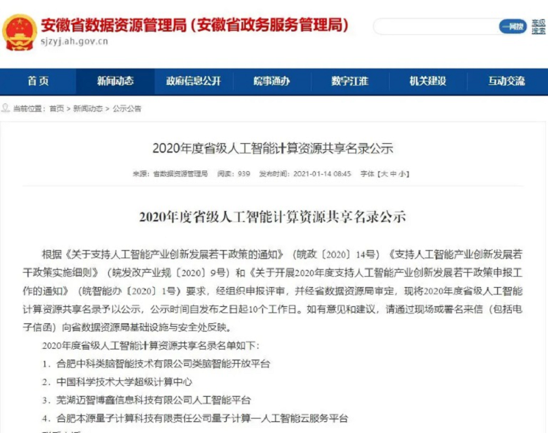 近日,安徽省數(shù)據(jù)資源管理局對外發(fā)布2020年度省級人工智能計算資源共享名錄公示名單。經(jīng)組織申報評審、省數(shù)據(jù)資源局審定、公示等環(huán)節(jié),中科類腦公司類腦智能開放平臺成功入選2020年度省級人工智能計算資源共享名錄。