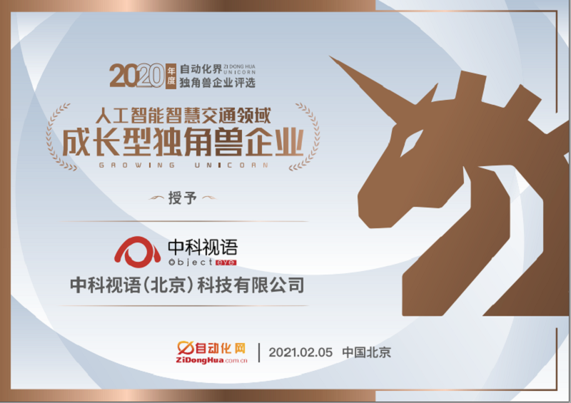 當選“2020年度自動化界人工智能智慧交通領(lǐng)域成長型獨角獸企業(yè)”
