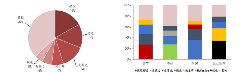 骨科行業(yè)作為醫(yī)療器械重要的細分領(lǐng)域,所在領(lǐng)域的前五大公司在全球醫(yī)療器械行業(yè)中也占據(jù)重要地位。