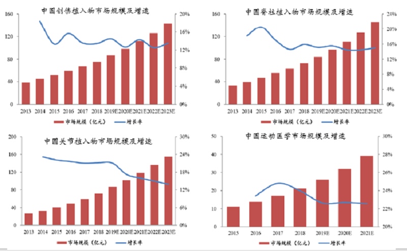 國內(nèi)骨科市場整體仍處于快速增長階段,創(chuàng)傷和脊柱領(lǐng)域具有提升市場份額的機會,在關(guān)節(jié)和運動醫(yī)學領(lǐng)域?qū)⒕哂休^大的國產(chǎn)替代空間和行業(yè)快速增長的機遇。