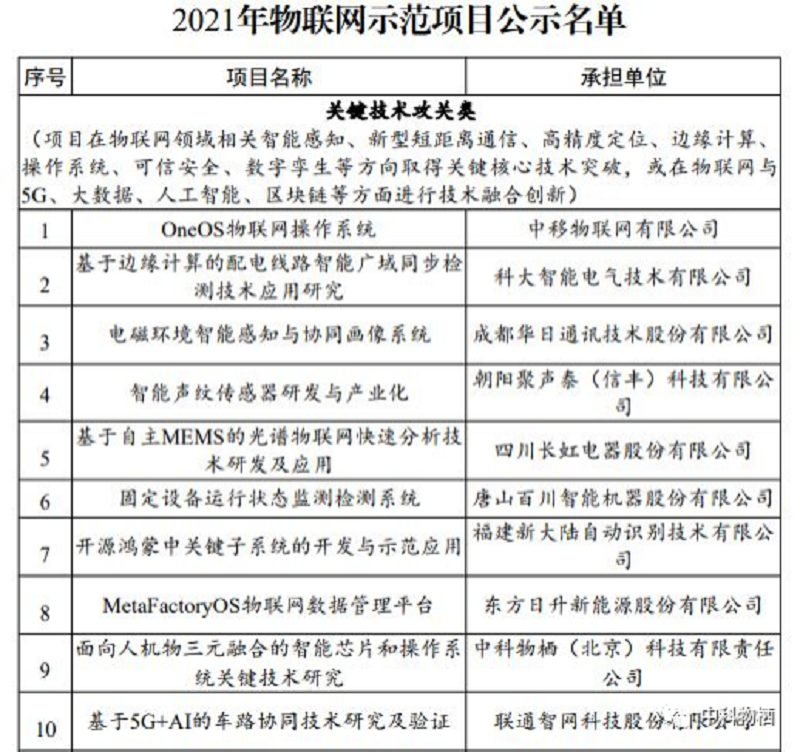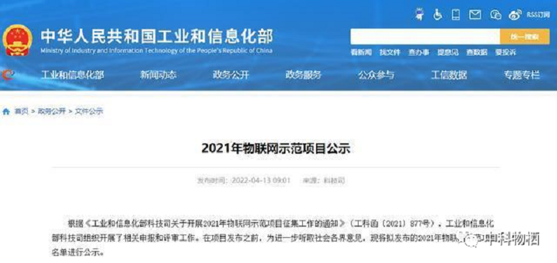 近日,工業(yè)和信息化部對2021年物聯(lián)網(wǎng)示范項目名單進行公示。