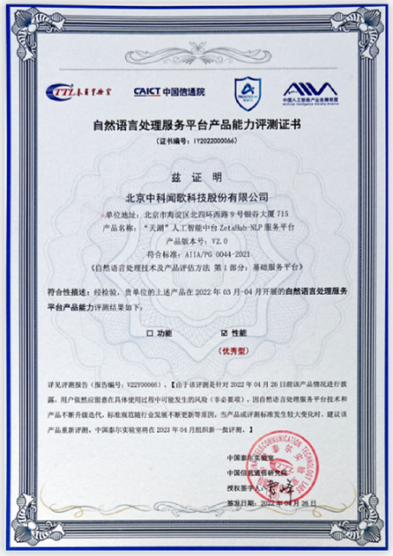 “天湖”NLP組件通過信通院“可信AI”權(quán)威認(rèn)證;
