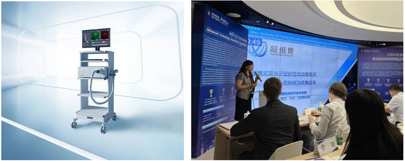 幾天前,超維景生物在2022中關(guān)村國際前沿科技創(chuàng)新大賽上也取得佳績。作為全球首個實現(xiàn)微型化雙光子顯微成像技術(shù)的高新技術(shù)企業(yè),超維景生物憑借自主研發(fā)的“便攜式雙光子皮膚顯微成像系統(tǒng)”,成功入圍“生物健康領(lǐng)域TOP10”榜單。該大賽密切跟蹤前沿科技新趨勢,圍繞人工智能、醫(yī)藥健康、集成電路等新興產(chǎn)業(yè)領(lǐng)域,面向全球公開選拔一批擁有全球首創(chuàng)、世界領(lǐng)先的前沿技術(shù)初創(chuàng)團隊和企業(yè)。