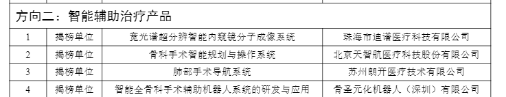 8月5日,由工業(yè)和信息化部、國(guó)家藥品監(jiān)督管理局共同組織的人工智能醫(yī)療器械創(chuàng)新任務(wù)揭榜公示,數(shù)字精準(zhǔn)旗下珠海市迪譜醫(yī)療科技有限公司“寬光譜超分辨智能內(nèi)窺鏡分子成像系統(tǒng)”,以及天智航“骨科手術(shù)智能規(guī)劃和操作系統(tǒng)”同時(shí)光榮入選智能輔助治療產(chǎn)品的揭榜單位,成為創(chuàng)新任務(wù)攻關(guān)主體。企業(yè)的技術(shù)和產(chǎn)品得到政府主管部門的認(rèn)可,進(jìn)一步奠定了行業(yè)領(lǐng)軍地位。