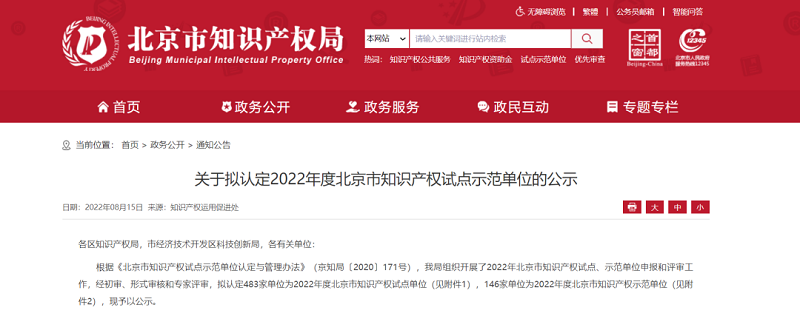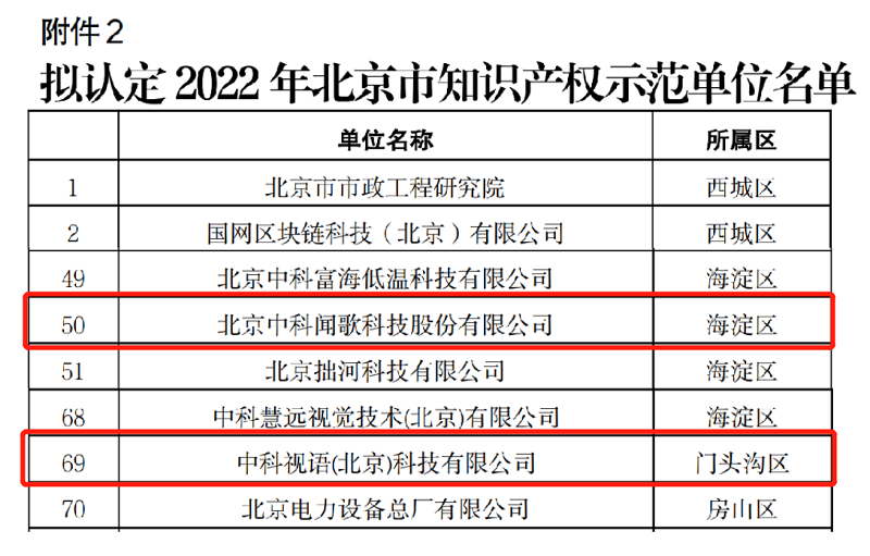 中科聞歌、中科視語(yǔ):光榮入選北京市知識(shí)產(chǎn)權(quán)示范單位