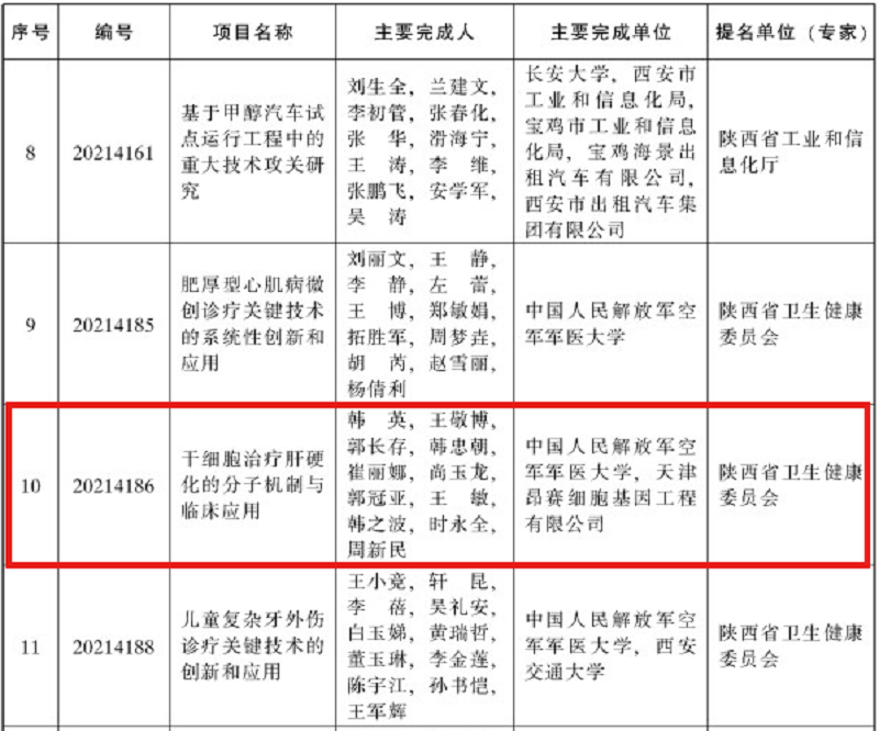 陜西省政府公布了2021年度陜西省科學(xué)技術(shù)獎(jiǎng)獲獎(jiǎng)名單,漢氏藥業(yè)旗下子公司天津昂賽細(xì)胞基因工程有限公司榮獲陜西省科學(xué)技術(shù)進(jìn)步獎(jiǎng)一等獎(jiǎng)。