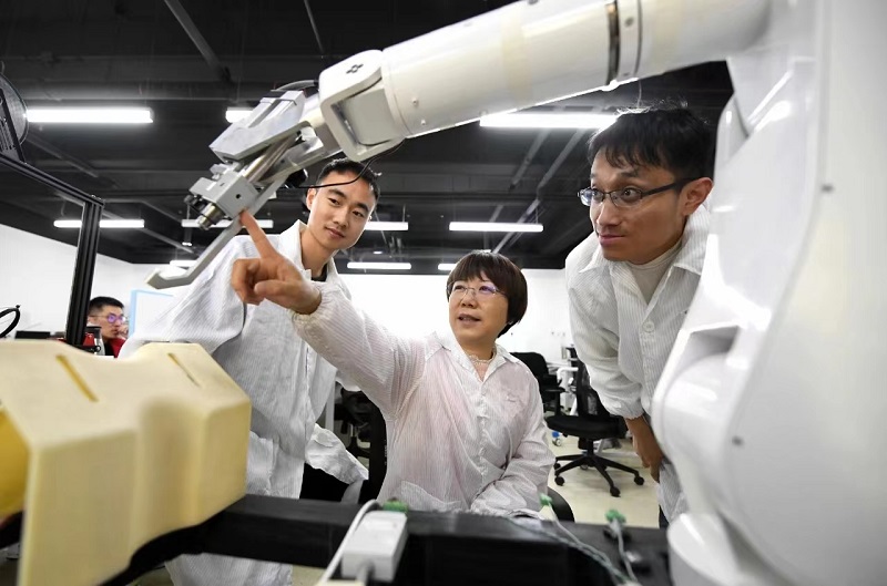帥梅教授在指導(dǎo)機器人科技研發(fā)