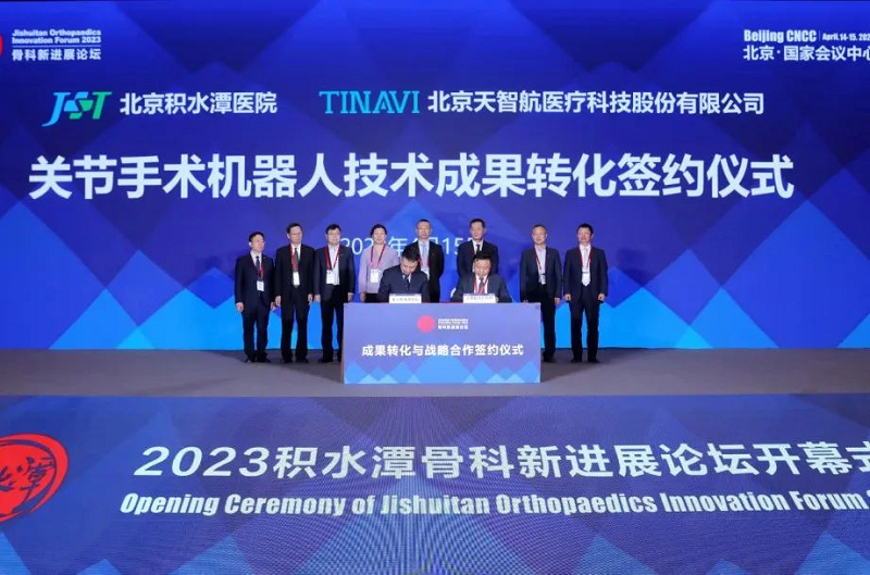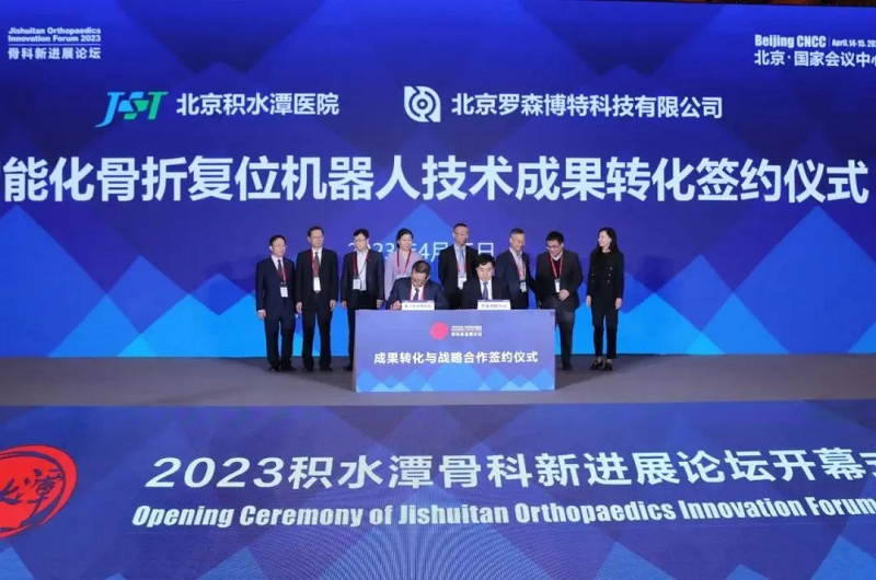 技術(shù)成果轉(zhuǎn)化簽約儀式是論壇的重要議程之一。君創(chuàng)Family企業(yè)北京羅森博特科技有限公司、北京天智航醫(yī)療科技股份有限公司分別與積水潭醫(yī)院簽署協(xié)議,總額達(dá)1.8億元,體現(xiàn)出兩項成果巨大的臨床應(yīng)用價值得到認(rèn)可。