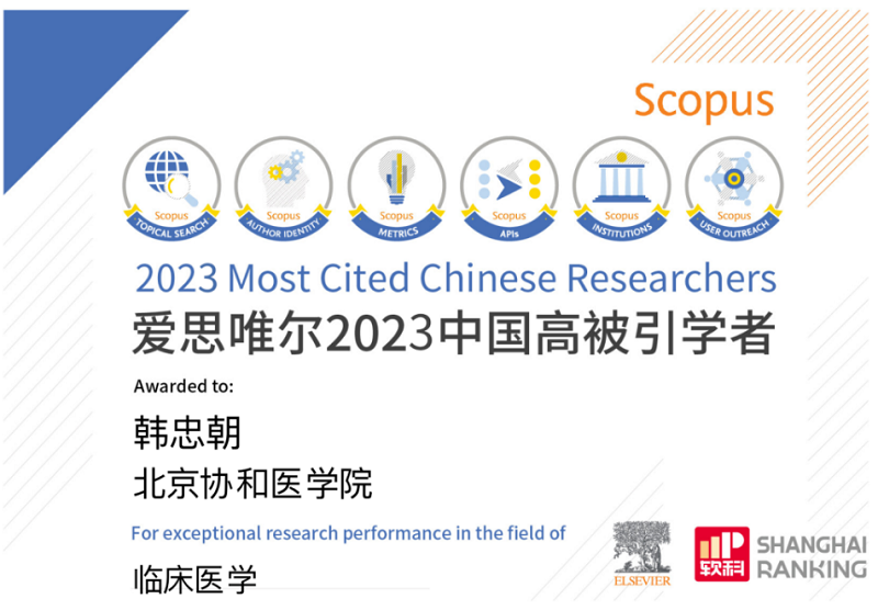 近日,愛(ài)思唯爾(Elsevier)重磅發(fā)布2023“中國(guó)高被引學(xué)者”榜單。漢氏聯(lián)合集團(tuán)董事長(zhǎng)韓忠朝院士再次入選該榜單,這也是韓院士自2015年以來(lái)連續(xù)九年入選,顯示了他在我國(guó)細(xì)胞研究領(lǐng)域卓越的影響力。