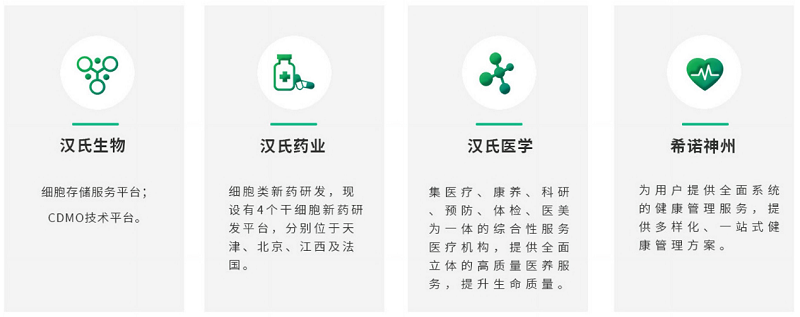 漢氏聯(lián)合由韓院士在2007年創(chuàng)立,專(zhuān)注于細(xì)胞產(chǎn)業(yè)創(chuàng)新發(fā)展,分四大業(yè)務(wù)板塊,涵蓋干細(xì)胞存儲(chǔ)、細(xì)胞類(lèi)新藥、檢驗(yàn)檢測(cè)、CDMO技術(shù)服務(wù)、健康管理等,在全國(guó)布局了7個(gè)臨床級(jí)細(xì)胞庫(kù),并且有8款自主研發(fā)的干細(xì)胞I類(lèi)新藥通過(guò)中國(guó)藥監(jiān)局臨床試驗(yàn)許可。同時(shí),公司承擔(dān)政府支持的重大項(xiàng)目研究,擁有幾十項(xiàng)細(xì)胞相關(guān)專(zhuān)利技術(shù)。全國(guó)設(shè)立多個(gè)研發(fā)平臺(tái),涵蓋工程實(shí)驗(yàn)室、研究中心、院士專(zhuān)家工作站、博士后工作站、高校聯(lián)合實(shí)驗(yàn)室等,致力于細(xì)胞技術(shù)造福人類(lèi)健康。