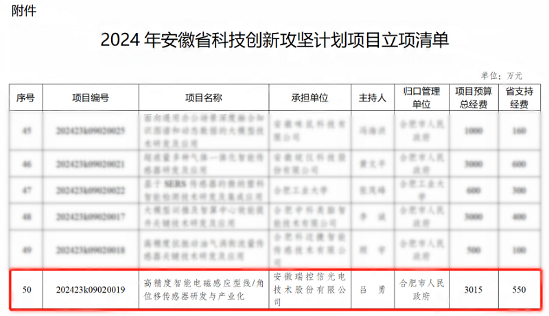 近日,安徽省發(fā)布2024年科技創(chuàng)新攻堅計劃項目立項通知,君創(chuàng)Family企業(yè)安徽瑞控信光電技術(shù)股份有限公司(簡稱“瑞控信”)獲批立項。這也是繼入選國家第六批專精特新“小巨人”企業(yè)后,瑞控信傳來的又一個好消息。“雙喜臨門”不僅是對企業(yè)技術(shù)實力的認(rèn)可,也是對其在科技創(chuàng)新領(lǐng)域優(yōu)異表現(xiàn)的肯定。