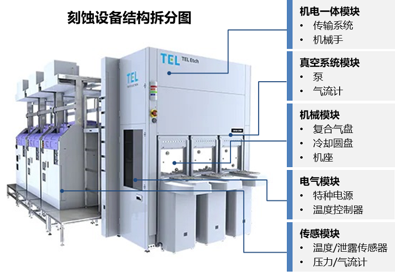 刻蝕設備的上游零部件如真空系統(tǒng)、特種電源等對設備性能至關重要。目前,國內在這些零部件領域的研發(fā)和生產仍處于起步階段,但已取得一定進展。例如,中科科儀和九天真空在真空系統(tǒng)領域已具備一定的研發(fā)能力,有望逐步實現(xiàn)進口替代。