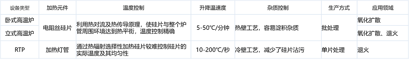 熱處理設備通過加熱和冷卻過程,實現(xiàn)硅片表面的擴散、氧化和退火等工藝。臥式爐和立式爐是傳統(tǒng)的熱處理設備,主要用于批量處理硅片,但隨著制程的不斷縮小,其均勻性和自動化程度的局限性逐漸顯現(xiàn)。RTP設備則采用快速加熱和冷卻技術,能夠在短時間內完成熱處理過程,適用于先進制程的單片處理。