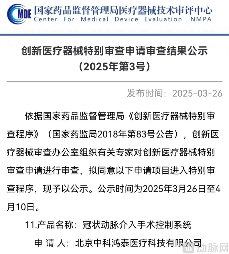 近日,君創(chuàng)Family企業(yè)北京中科鴻泰醫(yī)療科技有限公司(以下簡稱“中科鴻泰”)自主研發(fā)的血管介入手術(shù)機(jī)器人(產(chǎn)品名稱:冠狀動脈介入手術(shù)控制系統(tǒng)),通過國家藥品監(jiān)督管理局審評,正式進(jìn)入創(chuàng)新醫(yī)療器械特別審查程序(“綠色通道”)。這一突破不僅標(biāo)志著中科鴻泰血管介入手術(shù)機(jī)器人的創(chuàng)新技術(shù)及臨床價(jià)值得到行業(yè)高度認(rèn)可,也將加速產(chǎn)品上市進(jìn)程,推動血管介入手術(shù)機(jī)器人邁向臨床實(shí)用。