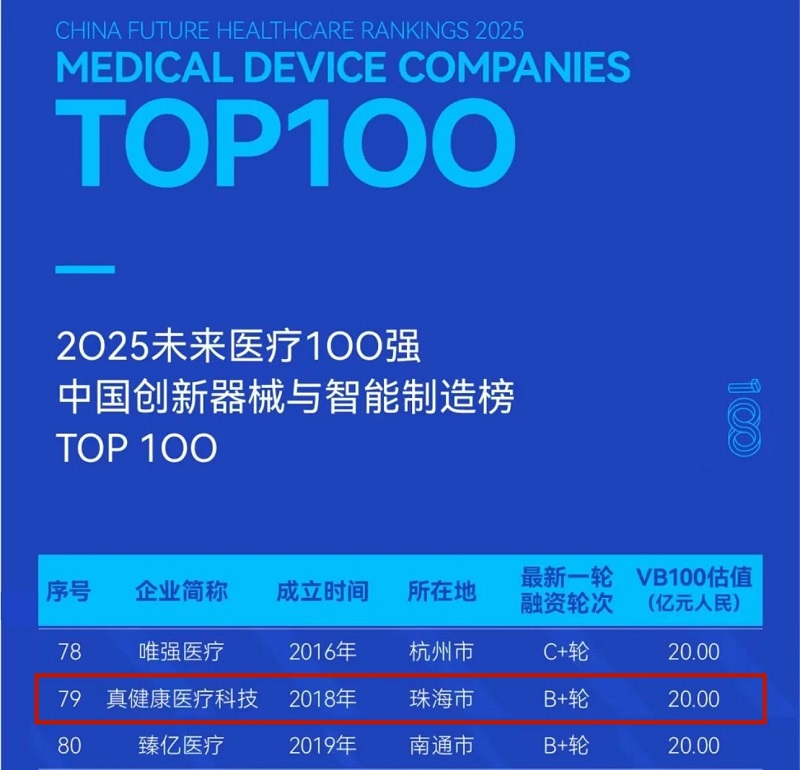 真健康入選“中國創(chuàng)新器械與智能制造榜 TOP 100”