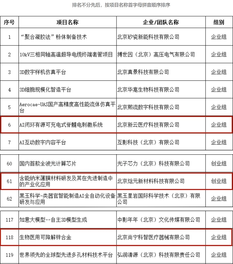 近日,第十屆 “創(chuàng)客中國(guó)” 北京市中小企業(yè)創(chuàng)新創(chuàng)業(yè)大賽暨 “創(chuàng)客北京 2025” 創(chuàng)新創(chuàng)業(yè)大賽總結(jié)會(huì)在北京舉行,現(xiàn)場(chǎng)揭曉的 TOP150 榜單中,君創(chuàng) Family 企業(yè)北京新云醫(yī)療科技有限公司(以下簡(jiǎn)稱“新云醫(yī)療”)、北京焓元新材料科技有限公司(以下簡(jiǎn)稱“焓元科技”)、北京尚寧科智醫(yī)療器械有限公司(以下簡(jiǎn)稱“尚寧科智”)三家企業(yè)成功入選該榜單,展現(xiàn)了企業(yè)卓越的創(chuàng)新實(shí)力,獲得了權(quán)威專家和市場(chǎng)的雙重認(rèn)可。