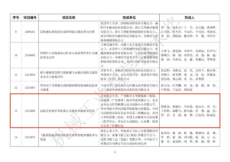 近日,2025年度“機械工業(yè)科學技術(shù)獎”正式揭曉,金科君創(chuàng)Family企業(yè)——廣東真健康醫(yī)療科技開發(fā)股份有限公司(以下簡稱“真健康”)與北京水木東方醫(yī)用機器人技術(shù)創(chuàng)新中心有限公司(以下簡稱“水木東方”),聯(lián)合北京理工大學、廣州醫(yī)科大學附屬第一醫(yī)院等8家單位共同申報的“高精度穿刺手術(shù)機器人關(guān)鍵技術(shù)創(chuàng)新及應用”項目,憑借突破性技術(shù)創(chuàng)新與顯著臨床價值脫穎而出,獲評技術(shù)發(fā)明獎一等獎!